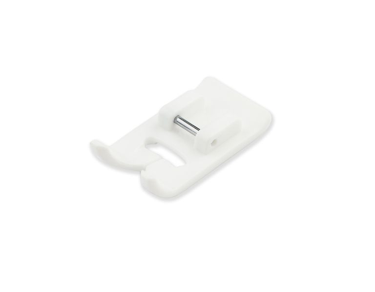 Лапка изготовлена из пластика с тефлоновым покрытием (материал с низким коэффициенттом трения), что позволяет работать с материалами, которые плохо продвигаются под обычной металлической лапкой, и избежать появления дефектов в виде неравномерной строчки и залипания ткани. Предназначена для работы с кожей, винилом, тканями со скользким покрытием, синтетическими кожзаменителями, плащевыми тканями.