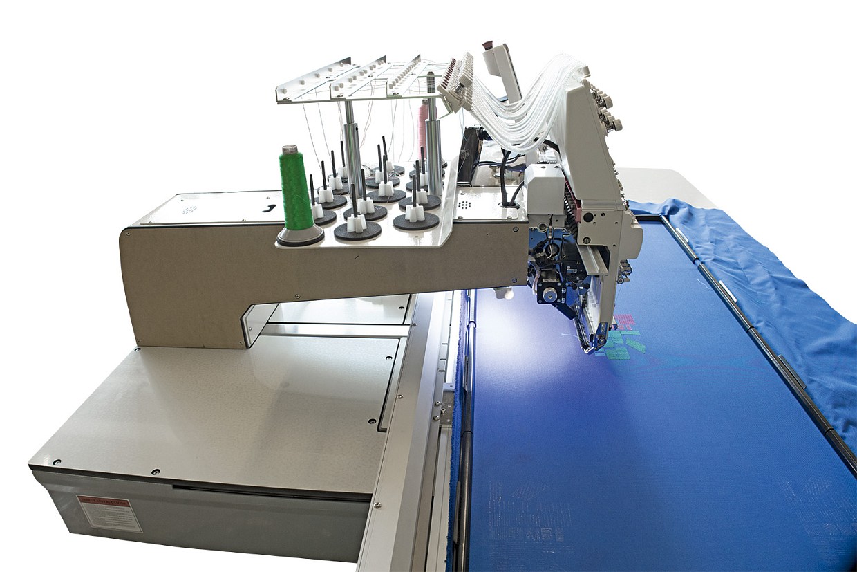 Одноголовочная 15-игольная промышленная автоматическая компактная вышивальная машина челночного стежка. С электронными устройствами для вышивки шнуром (Cording) и вышивки блёстками/пайетками (Sequin) в стандартной заводской комплектации.