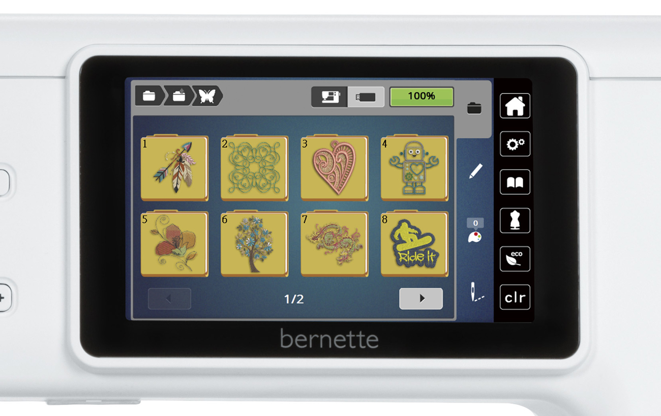 Загружайте собственные вышивальные узоры или узоры, которые вы отредактировали или составили с помощью ПО BERNINA Toolbox с помощью USB-накопителя.